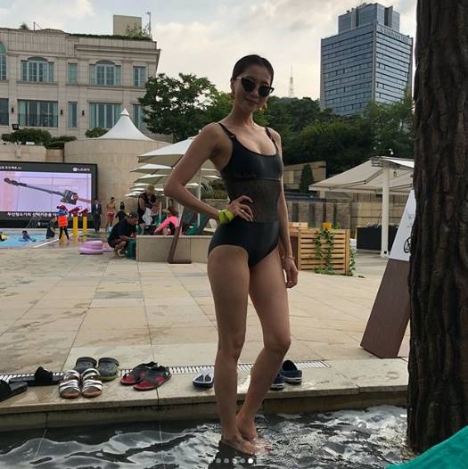 사진 속 오윤아는 블랙 컬러의 수영복을 입고 우월한 피지컬을 자랑하고 있다. 모델 출신다운 오윤아의 보디라인이 시선을 사로잡는다.