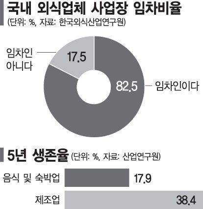 전 산업 중에서 외식 자영업 '폐업률 가장 높아'…5곳 중 4곳 5년내 문닫아