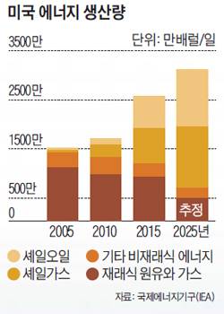 시추·개발 기술 향상과 인프라 확충·신규 유전 개발 등에 힘입어 미국의 셰일 에너지 혁명은 가속도를 내고 있다. 신현돈 인하대 교수(에너지자원공학)는 "미국 셰일오일은 시추에서 생산까지 걸리는 기간이 과거 2~3년에서 6개월 미만으로 짧아져 국제 유가 변동에 신속하게 대응할 수 있는 게 강점"이라고 했다. 최근엔 로키산맥 인근 지역에서 미국이 300년간 쓸 수 있는 약 2조 배럴의 셰일오일 매장이 드러났다. 이에 미국이 2년 후부터 석유와 가스를 수입하지 않고 자급자족할 것이란 전망이 나온다.
