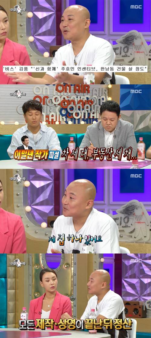 이에 김구라는 "그럼 '신과 함께' 정산은 어떻게 받았냐? 많은 분들이 대단한 줄 안다"고 물었고, 주호민은 "많은 분들이 그렇게 알고 계시는데 그게 모든 제작, 상영이 끝난 뒤에 정산이 된다. 1, 2편을 한꺼번에 찍어가지고"라고 답해 놀라움을 안겼다.