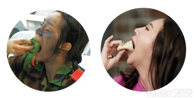 원조 ‘먹방돌’이다. 걸 그룹은 다이어트를 위해 ‘새 모이’처럼 적은 양을 먹는다는 게 정설로 통하던 때, 거침없는 먹방으로 신선한 충격을 안긴 ‘걸스데이’의 혜리와 유라. 혜리는 MBC 예능 <일밤-진짜 사나이>에서 얼굴에 위장크림을 바르고 상추에 제육볶음을 얹어 커다란 쌈을 싸 먹는 모습으로 화제를 모았다. “리필!”을 외치며 큰 쌈을 쉴 새 없이 먹는 그녀의 모습에 주변에서 “숨 쉬며 먹으라”고 걱정하기도. 하지만 아랑곳하지 않고 폭풍 흡입하며 먹방계의 전설로 남을 영상을 탄생시켰다. 같은 그룹의 유라가 혜리의 바통을 이어받았다. 올리브 <2016 테이스티로드> MC가 된 유라는 꾸밈없이 맛깔스럽게 음식을 먹는 것은 물론, 어깨춤을 추는 등 최강의 먹방 리액션으로 보는 이들의 침샘을 자극했다. 그녀는 <수요미식회>에 출연해 “눈을 감고도 고기 부위를 구별할 수 있어요. 일주일 내내 삼겹살을 먹어본 적도 있어요”라고 고백해 ‘먹방 대가’다운 모습을 보이기도.