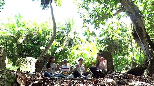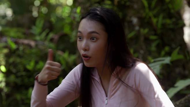 공개된 사진 속 한슬이 엄지 손가락을 치켜 들며 한껏 흥이 오른 모습 시선을 모은다. 정혜성-루다-권현빈-한슬이 먹거리 채집을 위해 함께 모인 가운데, 정혜성이 “우리 게임할까?”라며 게임을 제안한 것.