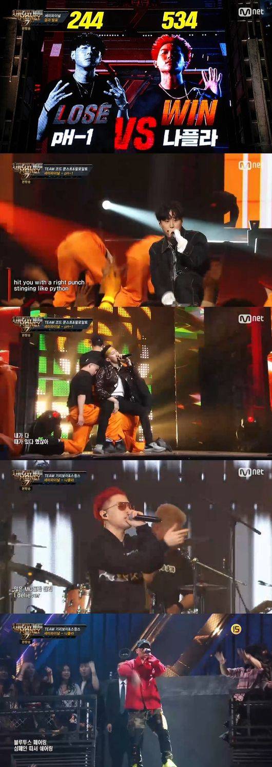 마지막 라운드는 나플라와 pH-1의 대결이 그려졌다. 먼저 박재범과 ‘주황색’ 무대를 꾸민 pH-1은 감각적인 랩과 비장의 무기 댄스까지 선보이며 무대를 압도했다. 이에 맞서 나플라 역시 ‘Wu’로 분위기를 달군 후 다이나믹듀오의 캐코와 밴드사운드가 인상적인 ‘SUNBBANG’으로 승부수를 걸었다. 관객들은 나플라 특유의 손 제스처로 화답했다.
