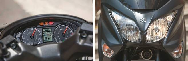 주행에서 한 가지 독특했던 점은 발판의 위치가 꽤 높다는 것이다. 불편한 정도는 아니지만 키가 큰 라이더라면 다리가 조금 많이 접히게 된다. 이는 발판 아래쪽에 자리 잡고 있는 연료탱크 때문이다. 10.5리터의 대용량 연료탱크는 한번 주유로 300km 정도(스즈키 발표 기준 350km) 달릴 수 있게 해준다. 수납공간도 충분하니 이정도면 장거리 투어도 가뿐하겠다.