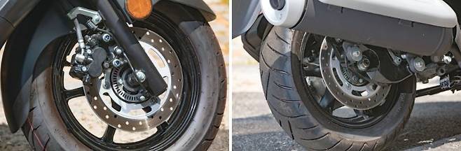 전후 디스크 브레이크의 스펙 자체는 기존 모델과 달라진 것이 없다. 하지만 ABS를 달아준 것으로 안심감은 확실히 높아진다. 대부분의 사고가 급제동시 일어나는 것을 생각하면 ABS는 든든한 보험 역할을 해준다. 널찍한 시트는 엉덩이 전체를 받쳐주기 때문에 피로감이 덜하다. 뒷자리 역시 좌우로 다리가 많이 벌어지는 단점은 있지만 125cc에서 기대하기 힘든 안락한 시트다. 특히 125cc 특성상 가속이 부드러워 탠덤 주행에 더욱 적합하다.
