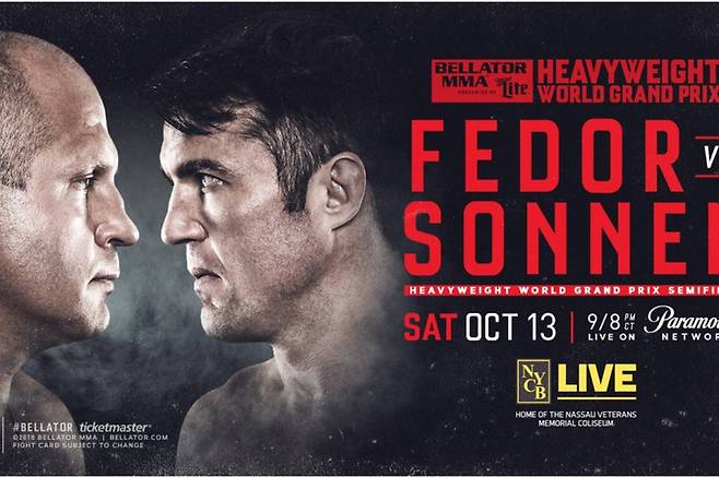 효도르 예멜리야넨코는 오는 14일 벨라토르 208 헤비급 토너먼트 준결승전에서 차엘 소넨과 만난다. 다른 준결승전은 오는 13일 벨라토르 207에서 열린다. 맷 미트리온과 라이언 베이더가 결승행 티켓을 놓고 다툰다.