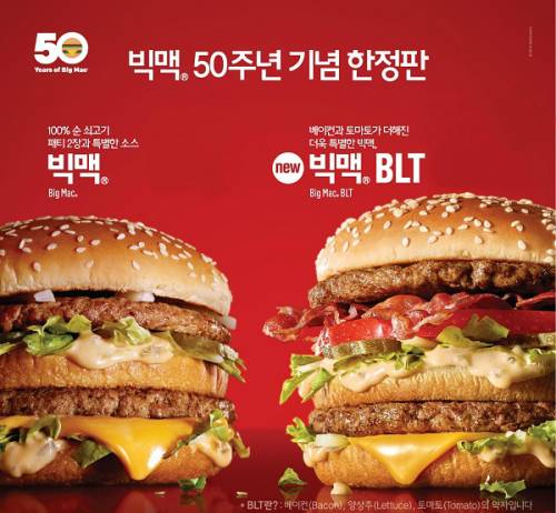 유일하게 한국에서만 선보이는 신제품 빅맥 BLT는 빅맥에 토마토와 베이컨을 더해 더욱 푸짐하고 특별한 맛을 선사한다. 8월6일부터 전국 맥도날드 매장에서 맛볼 수 있다.