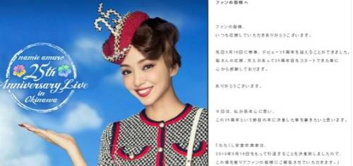 지난해 9월 아무로 나미에는 자신의 공식 홈페이지에 "40살 생일이자 데뷔 25주년이 되는 2018년 9월 16일 은퇴한다"라고 선언했다.
