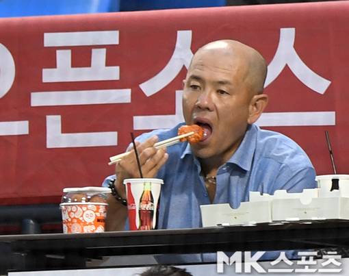 전 주니치 포수 오다 코헤이 '잠실구장에선 치맥이죠' [MK포토]