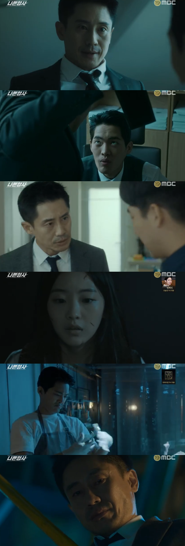 3일 방송된 MBC 월화드라마 '나쁜 형사'에서는 베테랑 경찰 우태석(신하균 분)이 13년 전 놓친 살인범이자 현직 검사인 장형민(김건우 분)을 만나는 모습이 그려졌다.