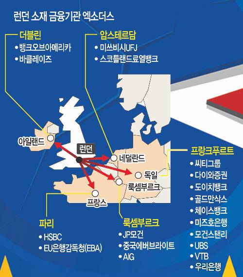이미 골드만삭스·JP모건·메릴린치 등 세계 3대 투자은행은 런던사업부를 절반 이하로 축소했다. 골드만삭스는 런던 인력의 절반을 감축했고 JP모건은 유럽 다른 도시의 3개 사무소로 인력 재배치를 완료했다. 독일 도이치뱅크, 일본 노무라증권, 중국 홍콩상하이은행(HSBC), 미국 뱅크오브아메리카, 심지어 영국 토종 금융사인 바클레이즈까지 탈출 러시에 가담하고 있다.
