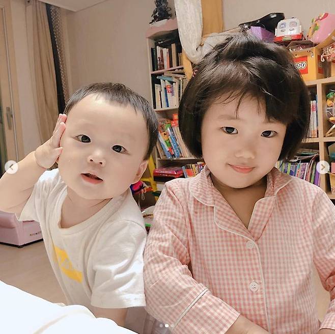 사진 속에는 아빠 장범준과 엄마 송승아를 쏙 빼닮은 남매의 모습이 담겨 있다. 귀여운 이목구비가 인상적. 남매의 돈독한 우애도 훈훈함을 더한다.