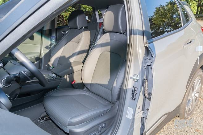 시트는 전동시트로, 시트 8Way, 럼버서포트 2Way이다. 통풍시트는 꽤 강한 바람이 나온다. 헤드레스트는 운전석과 조수석 모양이 조금 다르다. 운전석 헤드레스트가 위아래로 더 길다. 뒷좌석은 워낙 기대치가 낮아서 그런지, 넉넉하진 않지만, 평소 운전하는 위치로 세팅할 경우 타고갈만 하다고 느꼈다. 허리를 세우고 앉으면 괜찮지만, 장거리 주행을 하면서 엉덩이를 살짝 앞으로 빼면 소형차 수준 레그룸은 무릎공간의 부족함을 느끼게 한다. 헤드룸은 약간 여유가 있다.