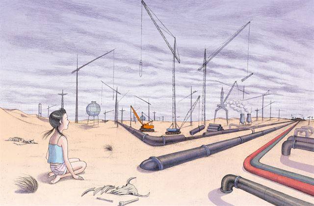 소윤경의 전작 대형 그림책 ‘레스토랑 Sal’과 ‘콤비’를 누렸던 독자들은 이쯤에서 색다른 선물이 등장하리라 짐작한다. 작가는 예민하고 호기심 많은 주인공 소녀를 낙원의 경계 지대로 내보낸다. 사막으로 열린 호텔의 뒤뜰에서 목마른 소년과 할아버지와 낙타 나그네들에게 물을 건네고 선물 받은 커다란 유리구슬, 그것은 소년의 목소리와 함께 원래의 낙원과 이후의 실낙원을 차례로 보여주면서 지금의 인공낙원이 훼손한 삶과 참 낙원의 복원을 각성하고 촉구한다.
