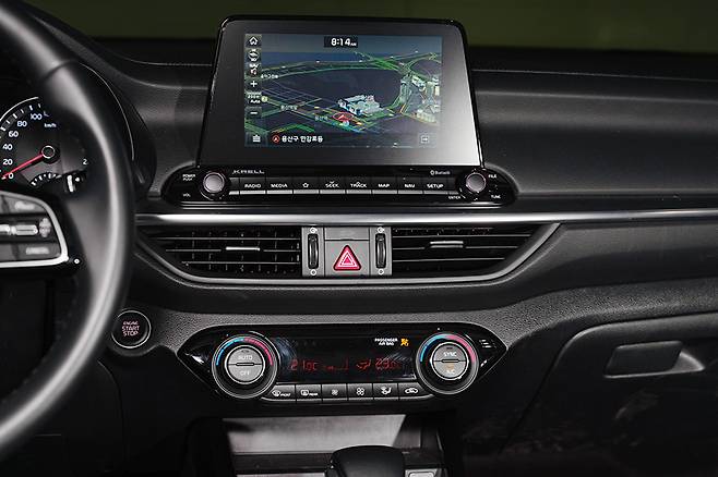 대시보드 중앙에 자리한 '팝업 스타일의 디스플레이 패널'은 현대기아차의 가장 큰 강점인 '한국 시장에 최적화된 인포테인먼트 시스템'과 다양한 편의사양을 지원한다. 여기에 대시보드 양끝에 자리한 원형의 에어밴트도 높은 만족감을 자랑하는 요소라 할 수 있을 것이다.