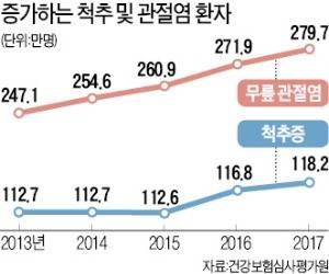 [ 이지현 기자 ] 다음달 2일은 노인의 날이다. 노인에 대한 사회적 관심과 공경의식을 높이기 위해 매년 10월을 경로의 달로, 이날을 노인의 날로 정했다. 노인이 되면 흔히 호소하는 질환이 척추·관절질환이다. 디스크탈출증, 척추관 협착증, 퇴행성 관절염, 어깨 회전근개 파열 등으로 고생하는 환자가 늘어난다. 이들 질환은 인체가 노화하면서 발생 위험이 높아지는 데다 척추와 관절은 한번 손상되면 쉽게 재생되지 않기 때문이다. 따라서 평소 질환에 걸리지 않도록 잘 관리하는 것이 중요하다. 통증이 있는 사람은 질환으로 발전하지 않도록 운동 등에 신경써야 한다. 각종 척추·관절질환의 원인과 예방을 위한 운동법 등을 알아봤다.