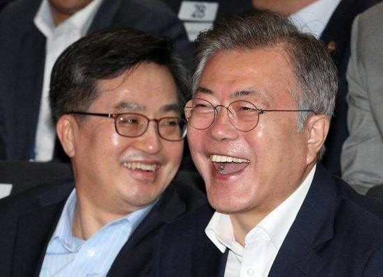 '무슨 이야기를 하길래?'.. 문재인 대통령 '빵 터진 웃음'