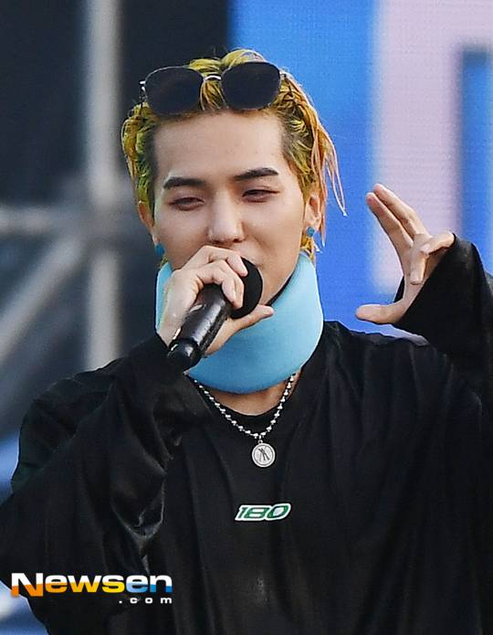 이 가운데 송민호는 목에 깁스를 착용한 채 무대를 선보이는 모습으로 눈길을 모았다.