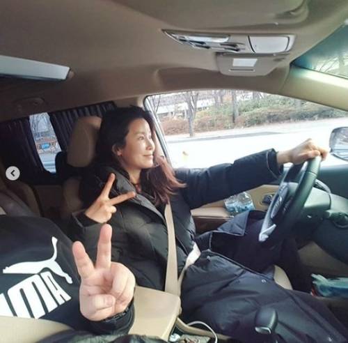 사진 속 운전대를 잡은 이태란은 조수석에 매니저를 태운 채 뿌듯한 미소를 짓고 있다. 롱패딩을 입고 민낯의 수수한 모습인 이태란의 청순한 매력이 돋보인다.