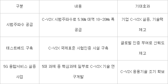 〈표〉과기정통부 C-V2X 기술 활성화 사업