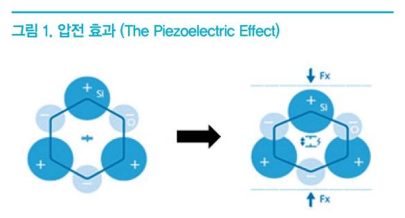 1880년 Pierre와 Jacques Curie 형제는 특정한 크리스탈에 기계적 부하을 가하면, 전기 에너지의 한 종류인 전하가 발생하고, 기계적 부하량에 따라 전하의 발생량이 변하는 압전 효과<그림 1>를 발견하였다. 그러나 기계적 부하에 따른 발생 전하의 총량이 너무 작아, 실제 연구개발 및 산업 현장에 적용하기는 한계가 있음을 발견하였다.