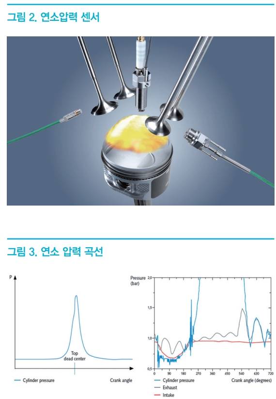최근에는 실제 주행 조건에서의 연소압력 평가의 필요성이 증가하고 있으며, INCA, 연소해석기 및 연소 압력센서를 이용하여, 매핑 및 압력 측정이 실시간으로 측정되어 ECU에 반영이 되고 있다. 따라서 크랭크 각도에 따른 실린더 압력은 정확하고 응답성이 좋은 센서가 요구 되고 있어 압전 효과를 이용한 연소 압력 센서가 전세계적으로 널리 사용되고 있다.