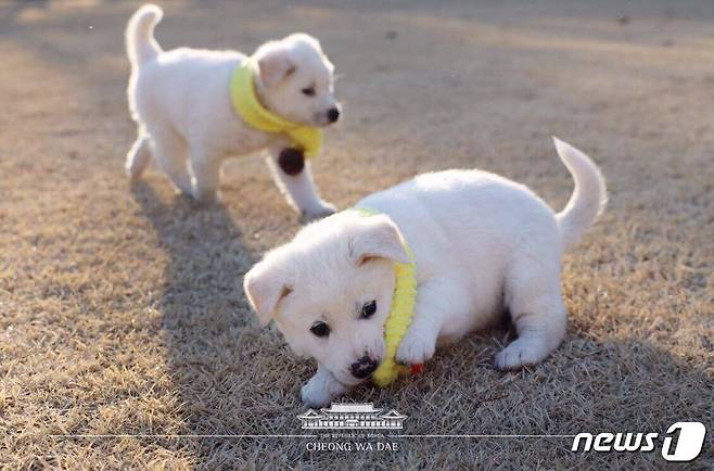 청와대 경내 뛰노는 풍산개 강아지들