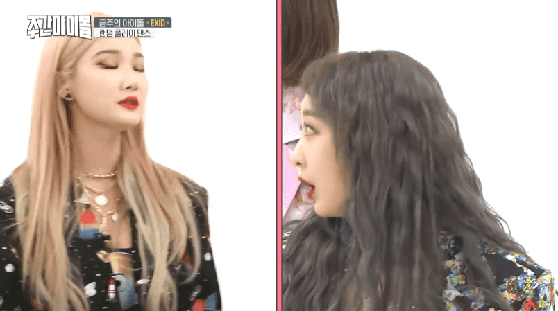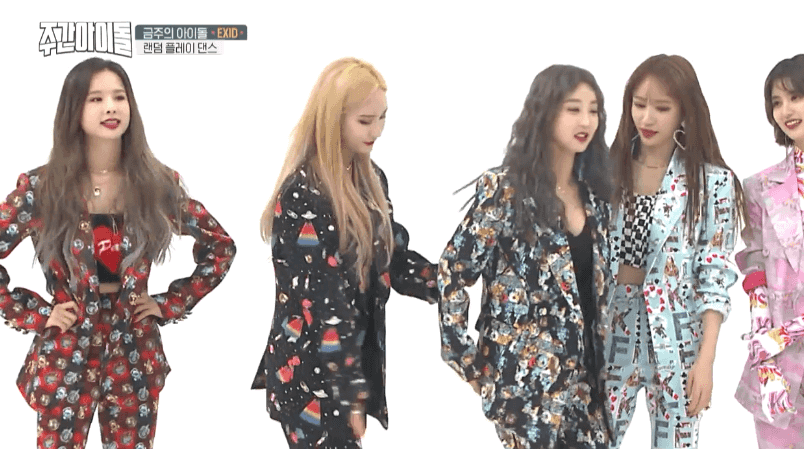 28일(수) 방송된 MBC에브리원 '주간아이돌'에는 2년 만에 완전체로 컴백한 EXID가 출연했다. 이날 ‘랜덤 플레이 댄스’ 도전에 앞서 EXID는 안무를 틀릴 경우 벌칙으로 엉덩이를 맞기로 했다. 안무를 반대 방향으로 한 혜린에 이어 LE의 동선 실수로 인해 ‘랜덤 플레이 댄스’ 도전에 실패했다.