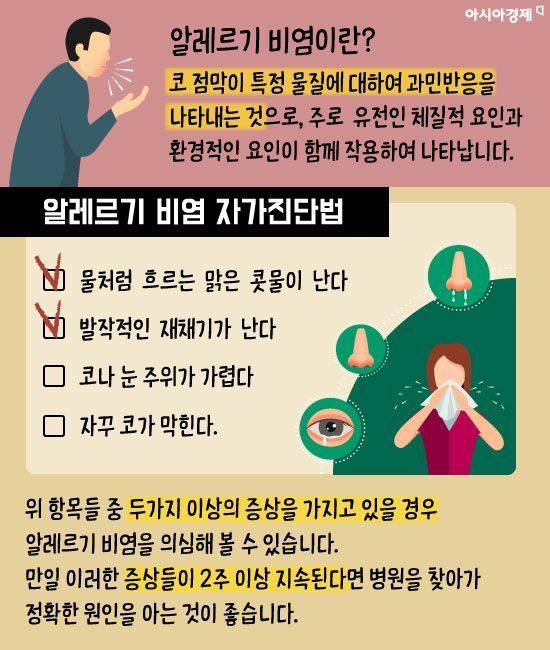 서울시 용산구에 거주하는 34세 직장인 김신우씨는 환절기만 되면 물처럼 맑은 콧물이 지속되고 잦은 재채기로 고생한다.
