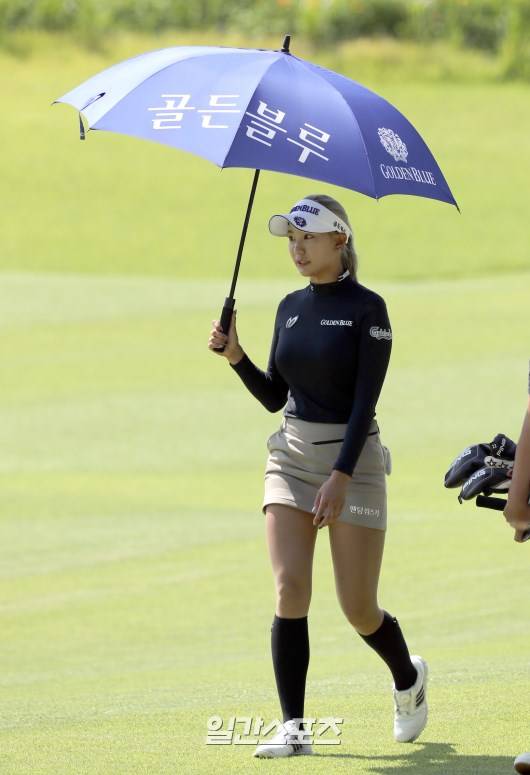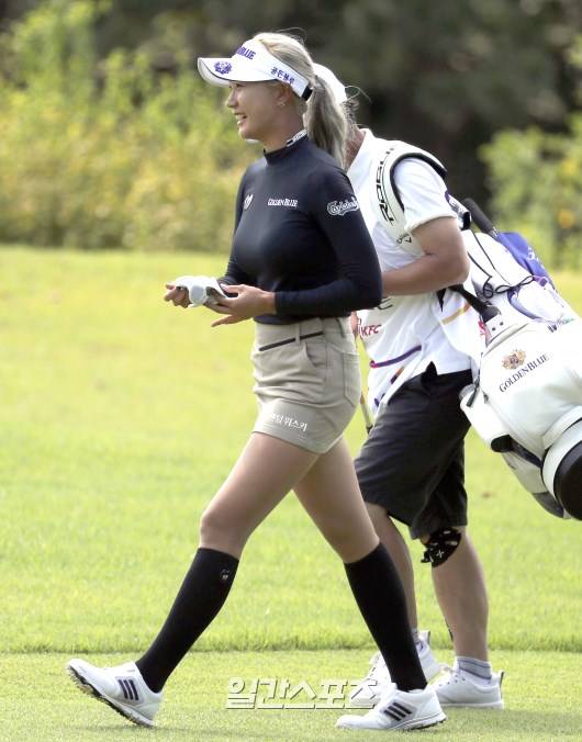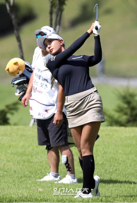 '미녀골퍼' 유현주(골든블루)가 9일 오전 경기도 용인시 써닝포인트CC에서 열린 ‘제8회 KG·이데일리 레이디스 오픈 with KFC 3라운드에서 경기를 펼치고 있다. 용인=정시종 기자 jung.sichong@jtbc.co.kr /2018.09.09.