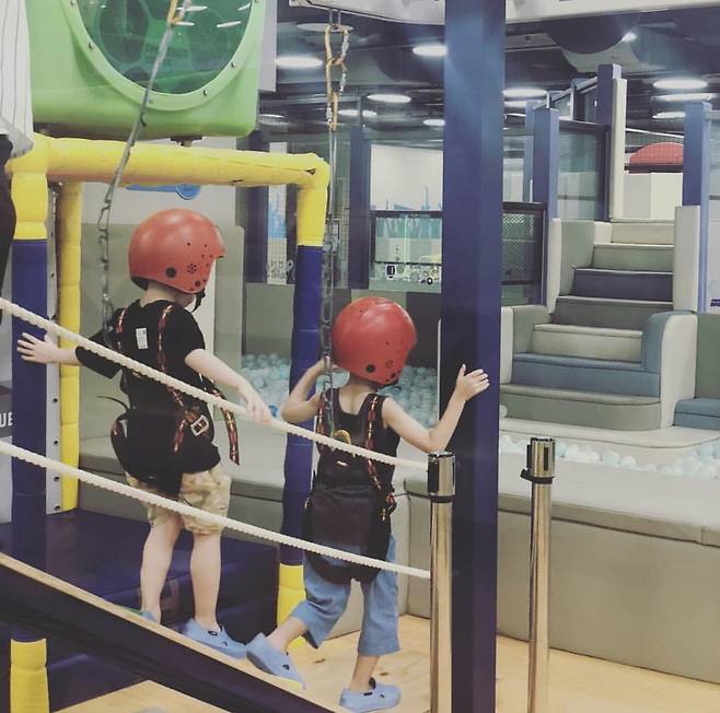 사진 속에는 키즈 카페 같은 곳에서 함께 놀고 있는 하하 아들 드림, 정준하 아들 로하의 모습이 담겼다.