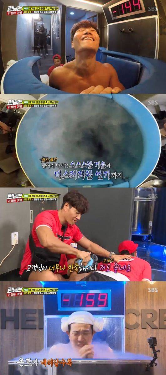 김종국은 '런닝맨' 멤버들에게 냉찜찔을 권했다. 김종국은 "유명 운동 선수들이 운동 끝나고 나서 바로 냉찜질이다"라고 강권했다. 멤버들은 김종국의 설득에 넘어가서 냉찔짐을 받아드렸다. 김종국은 드릴 마사지기로 안마를 해줬다.