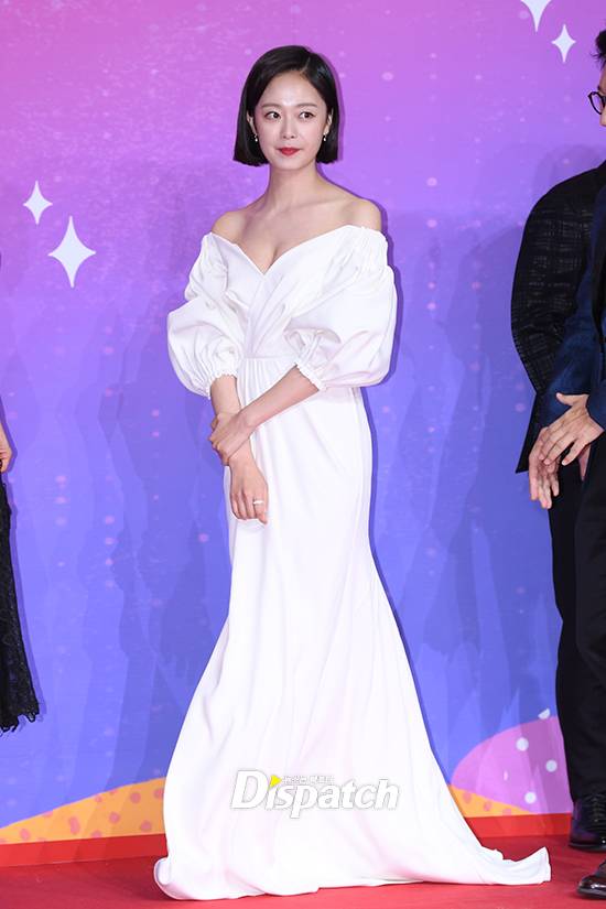 전소민은 어깨를 드러낸 화이트 롱 드레스로 순백의 자태를 뽐냈다.