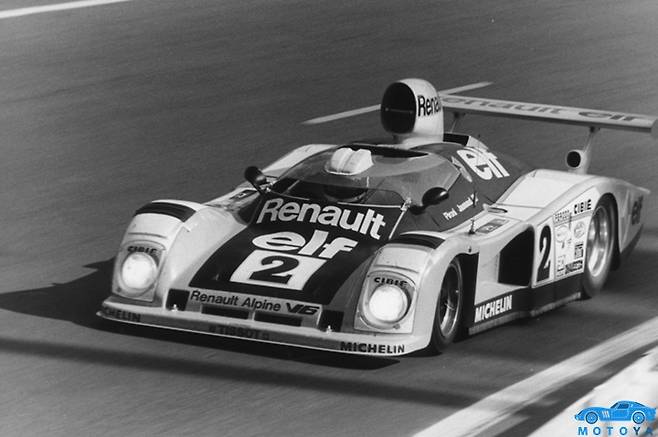 1973년에는 알핀(Alpine)을 인수해 알핀 A110 베를리넷을 출전시켜 첫 번째 WRC에서 우승을 거뒀다. 르노는 레이스카 제작을 위한 공장을 파리에서 20km 떨어진 비리-샤티용(Viry-Chatillon)에 짓는다. 당시 V6 2리터 엔진 개발에 열을 올렸고 이 엔진을 사용해 ‘유로피언 2리터 스포츠카 챔피언십’에서 준수한 성능을 뽐내며 르노의 경쟁력을 다시 한번 입증시켰다. 이후 FIA 월드 스포츠카 챔피언십에 참가하며 터보를 올린 엔진을 개발한다.