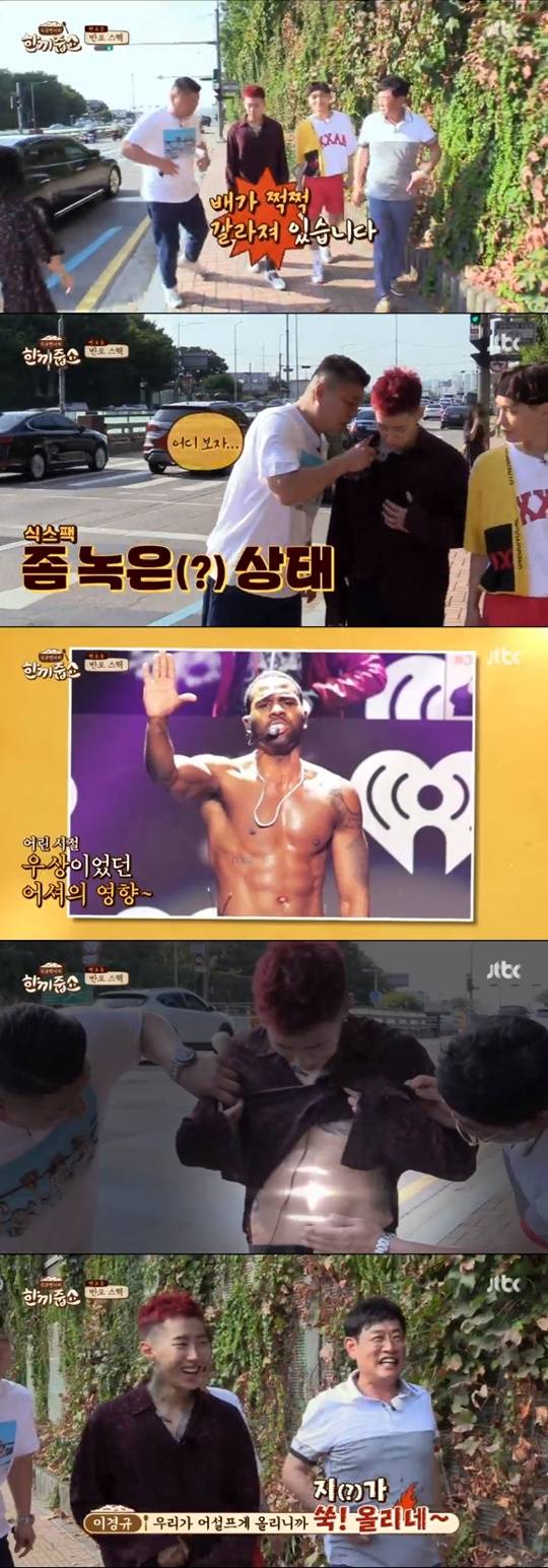 [엑스포츠뉴스 김의정 기자] '한끼줍쇼' 박재범이 길 한복판에서 복근을 공개했다.