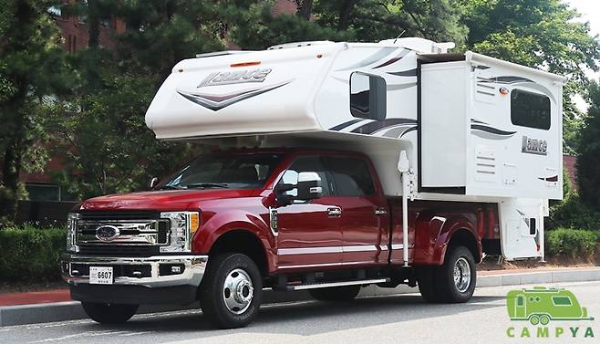 시승한 F-350 슈퍼듀티와 같은 헤비듀티급 픽업트럭의 경우에는 보다 넉넉한 내부 공간을 제공하는 대형의 트럭캠퍼를 적재할 수 있다. 적재함 크기까지 크다면 최대 크기의 트럭캠퍼도 적재 가능하다. 촬영에 함께한 트럭캠퍼는 랜스의 1172 모델로 랜스 트럭캠퍼 라인업의 최고봉이라 할 수 있는 모델이다. F-350 슈퍼듀티는 이 외에도 다양한 종류의 트럭캠퍼를 사용할 수 있다.