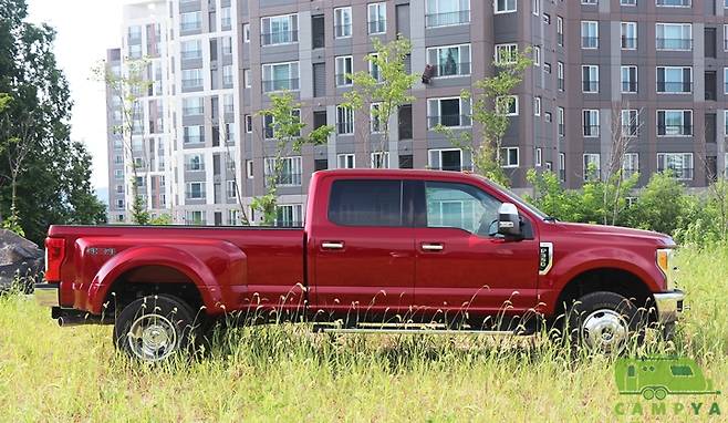 포드 F-시리즈 픽업트럭은 풀사이즈 모델인 F-150과 헤비듀티급 모델인 F-250, F-350, F-450 등으로 구성된다. 헤비듀티급 모델은 ‘슈퍼듀티(Super Duty)’라는 별칭으로 구분한다. 헤비듀티 픽업트럭은 풀사이즈 픽업트럭 보다 윗급에 위치하는 차종으로, 풀사이즈급보다 더 강력한 견인력을 자랑한다. 캠프야에서는 광활한 미 대륙을 누비는 정통 미국식 헤비듀티급 픽업트럭, F-350 슈퍼듀티 XLT 모델을 경험했다. 시승한 F-350 슈퍼듀티는 8피트 적재함과 사륜구동(4X4), 그리고 복륜 차축이 적용된 모델이다.