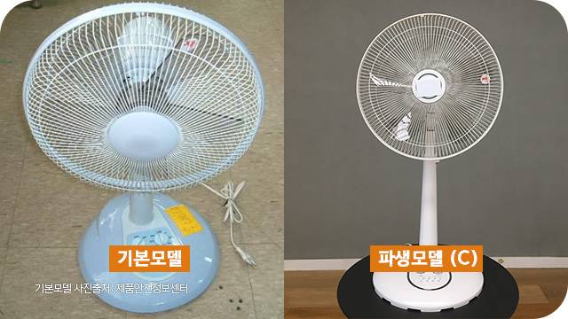 다시 C선풍기 이야기로 돌아오자. C선풍기가 파생모델로 등록될 때 추가 시험이 진행됐을까? C가 기본모델 선풍기와 얼마나 비슷한지 알아봤다. 기본모델과 파생모델은 날개 크기가 다르다. 기본모델의 날개 지름은 35cm였다. 그런데 문제의 C선풍기는 40cm다. 날개가 5cm나 차이난다.