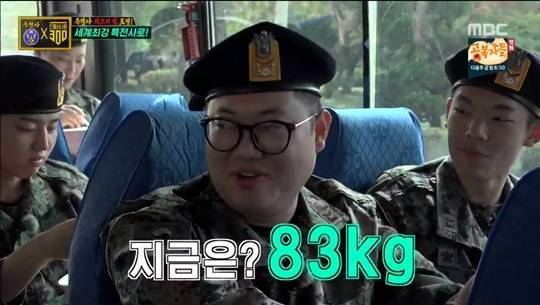 감스트는 "그때는 날아다녔다. 61kg이었다. 그런데 제대 후 22kg 더 쪘다. 지금은 83kg이다"고 밝혀 좌중의 놀라움을 자아냈다.