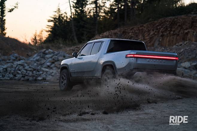 리비안은 R1T 픽업트럭에 두 종류의 배터리팩을 탑재할 수 있다고 밝히고 있다. 130kWh 배터리팩을 탑재하면 최대 300마일(약 482km), 180kWh 배터리팩을 탑재하면 400마일(약 643km)까지 활동범위는 늘어난다. 아직 검증된 성능은 아니지만 설계상의 성능이 실제로 발휘된다면 감탄하기에는 충분하다. 0-96km/h(0-60마일) 도달시간은 3.0초, 1-160km/h(0-100마일) 도달시간은 7초다. 파워트레인의 성능은 고성능 스포츠카에 견줄만 하다는 뜻이다.