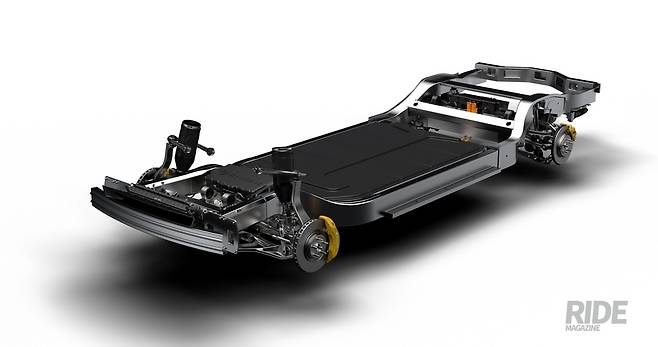 리비안의 R1T 픽업트럭은 기존 차량을 개조한 것이 아닌 처음부터 EV 전용으로 개발된 플랫폼을 사용한다. 리비안은 EV 플랫폼에 ‘스케이트보드’ 섀시를 사용한다고 밝혔다. 이름에서 대략적인 구조를 짐작할 수 있다. 납작한 배터리 팩을 플랫폼 바닥에 탑재한 섀시 구조, 섀시 위에 어떤 타입의 차체를 얹느냐로 쉽게 생산 차종을 바꿀 수 있을 것이 분명하다. 리비안 뿐 아니라 새롭게 등장하는 여러 메이커의 전기차에 적용되는 방식이다.