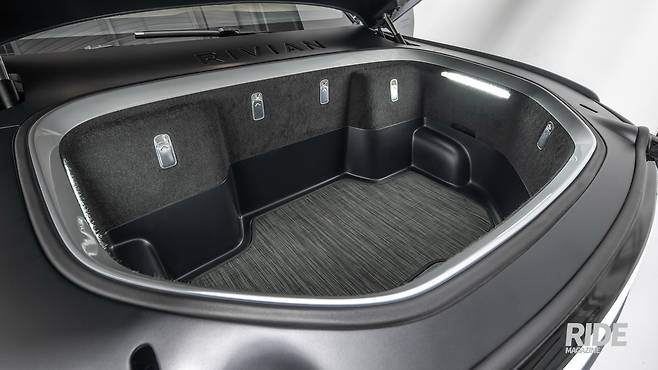 또 다른 특징은 넓은 수납공간이다. 전형적인 픽업트럭의 엔진룸처럼 보이는 공간이 운전석 앞쪽으로 돌출되었지만, 후드 아래에는 물론 엔진이 들어있지 않다. 후방의 화물 적재공간과 별도로 운전석 앞쪽에 330리터의 수납공간을 갖췄다. 이 공간은 전방 충돌 시 완충의 역할도 하게 될 것이다. 또한 배터리팩을 보호하고 미국에서 5성급 충돌 테스트 안전 등급을 확보하기 위해 차체 하부를 케블라 및 카본파이버로 강화했다.