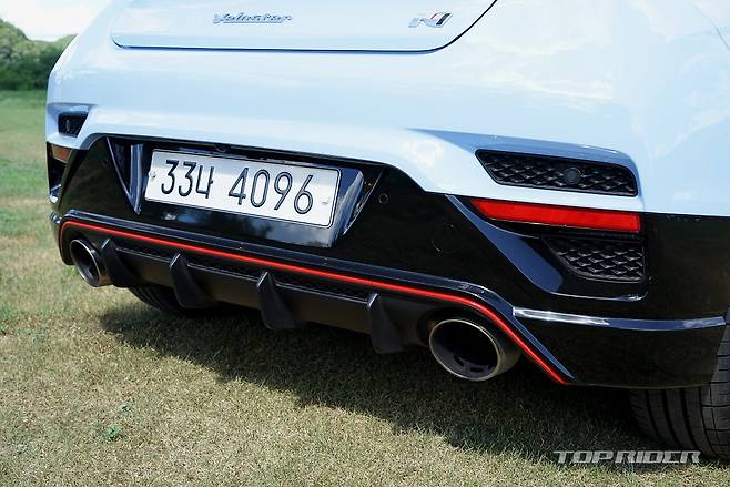 여기에 N 전용 라디에이터 그릴과 범퍼, 레드 브레이크 캘리퍼, 리어 스포일러, 디퓨저, LED 헤드램프와 리어램프, N 전용 스티어링 휠, 변속기 노브, 메탈 도어 스커프, 블루 엑센트와 시트벨트, 시프트 타이밍 인디게이터, 가죽 버킷시트까지 제공된다.