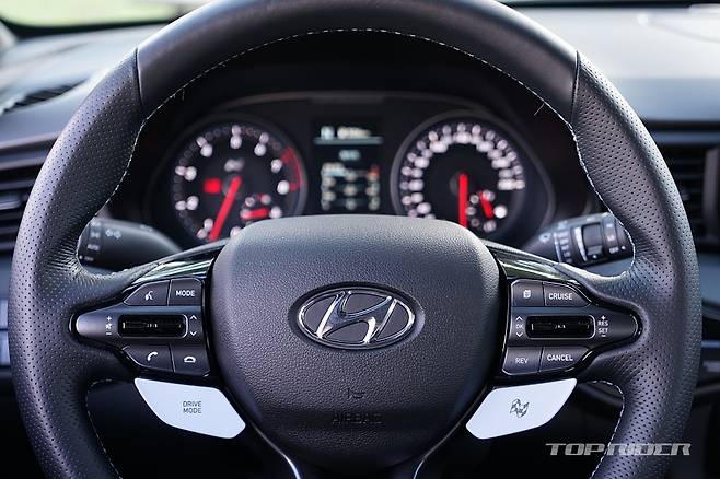 시승차는 퍼포먼스 패키지가 적용된 사양이다. 2.0리터 4기통 T-GDi 터보엔진으로 6000rpm에서 최고출력 275마력, 1450-4700rpm에서 최대토크 36.0kgm다. 공차중량은 기본형 대비 30kg 무거운 1410kg, 복합연비는 10.5km/ℓ(도심 9.5, 고속 11.9)다.