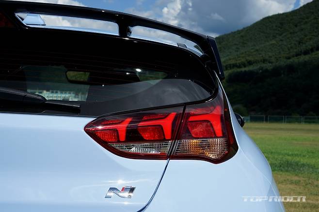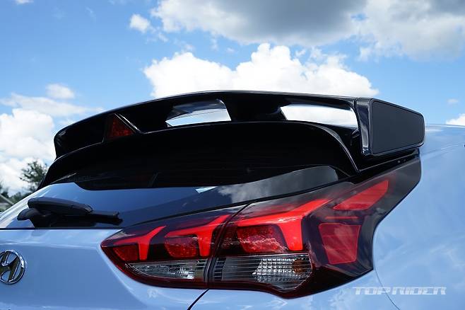 여기에 N 전용 라디에이터 그릴과 범퍼, 레드 브레이크 캘리퍼, 리어 스포일러, 디퓨저, LED 헤드램프와 리어램프, N 전용 스티어링 휠, 변속기 노브, 메탈 도어 스커프, 블루 엑센트와 시트벨트, 시프트 타이밍 인디게이터, 가죽 버킷시트까지 제공된다.