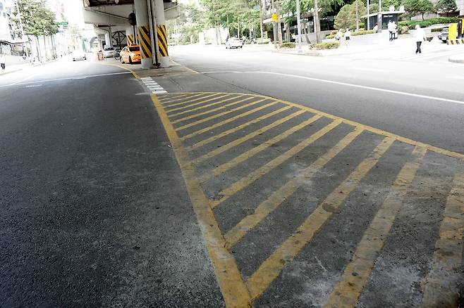 황색 실선 복선 - 주정차 절대 금지