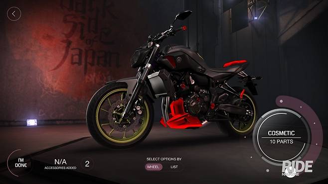또한 다양한 스타일링을 연출할 수 있는 빌렛 커버, 메쉬 그릴 및 하이 마운트 장착 번호판 홀더도 있으며 모델별로 더 강한 성능을 원하는 경우 배기 장치 라인업이 마련되어 있어 고성능 튜닝을 추구할 수도 있다.