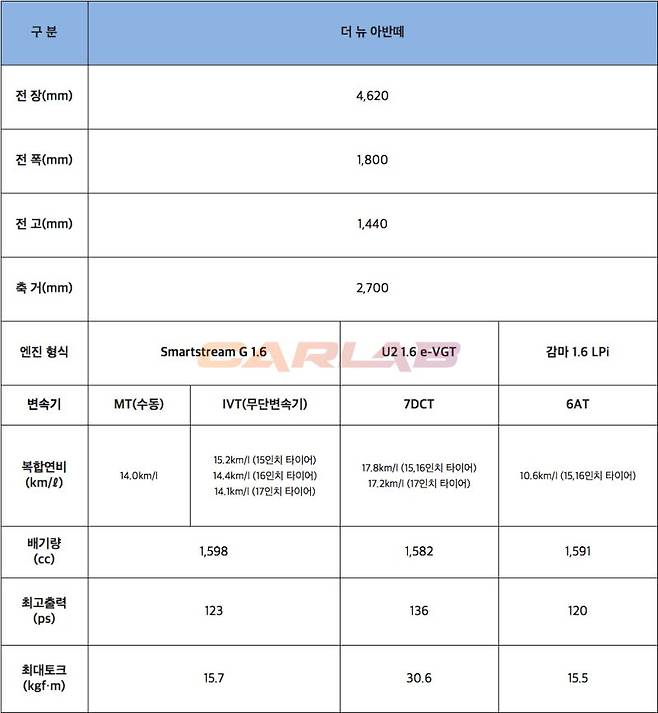 더 뉴 아반떼는 가솔린, 디젤, LPi 등 3가지 엔진으로 운영된다.