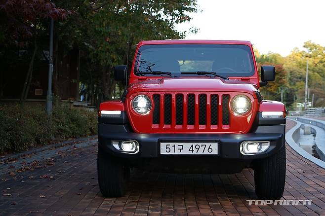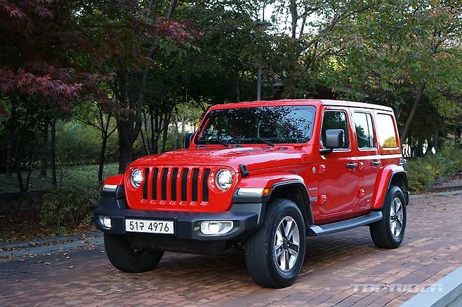 신형 랭글러의 외관은 차에 관심을 두지 않는 소비자라면 큰 변화를 느낄 수 없을 정도로 기존 모델의 디자인 정체성을 계승했다. 랭글러 특유의 원형 헤드램프와 7-슬럿 그릴을 비롯해 외부로 노출된 도어힌지와 돌출된 펜더, 짧은 전후방 오버행이 적용됐다.