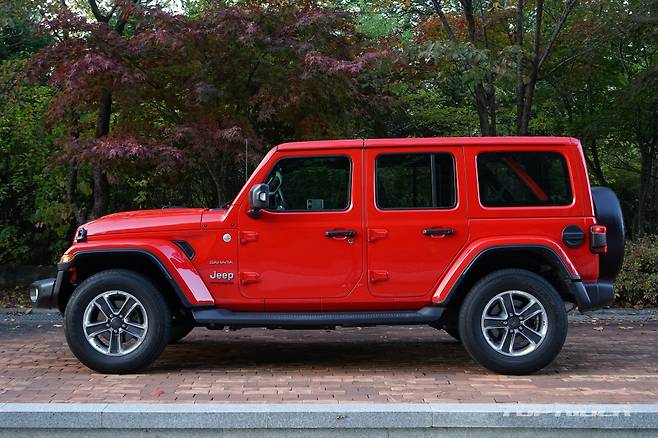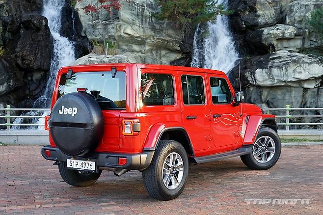 신형 랭글러는 이런 아쉬움을 한번에 해결했다. 기존 JK 플랫폼에서 JL 플랫폼으로 변경하면서 차체에 알루미늄을 적용해 무게를 줄이고, 윈드실드 각도를 조정해 공기저항을 줄였다. 또한 2.0리터 가솔린 터보엔진과 8단 자동변속기를 통해 효율성이 36% 향상됐다.